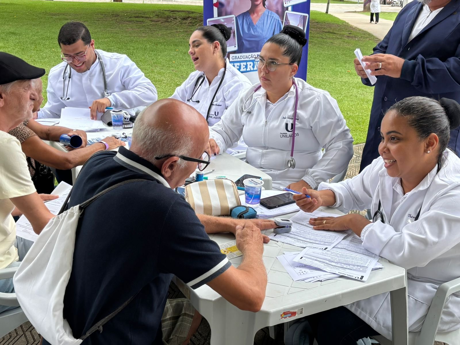 A ação também ofereceu atendimentos de saúde aos participantes, incluindo aferição de glicose, verificação da pressão arterial e outras práticas voltadas ao cuidado com os idosos.