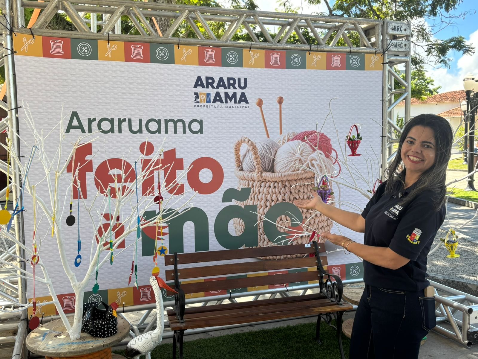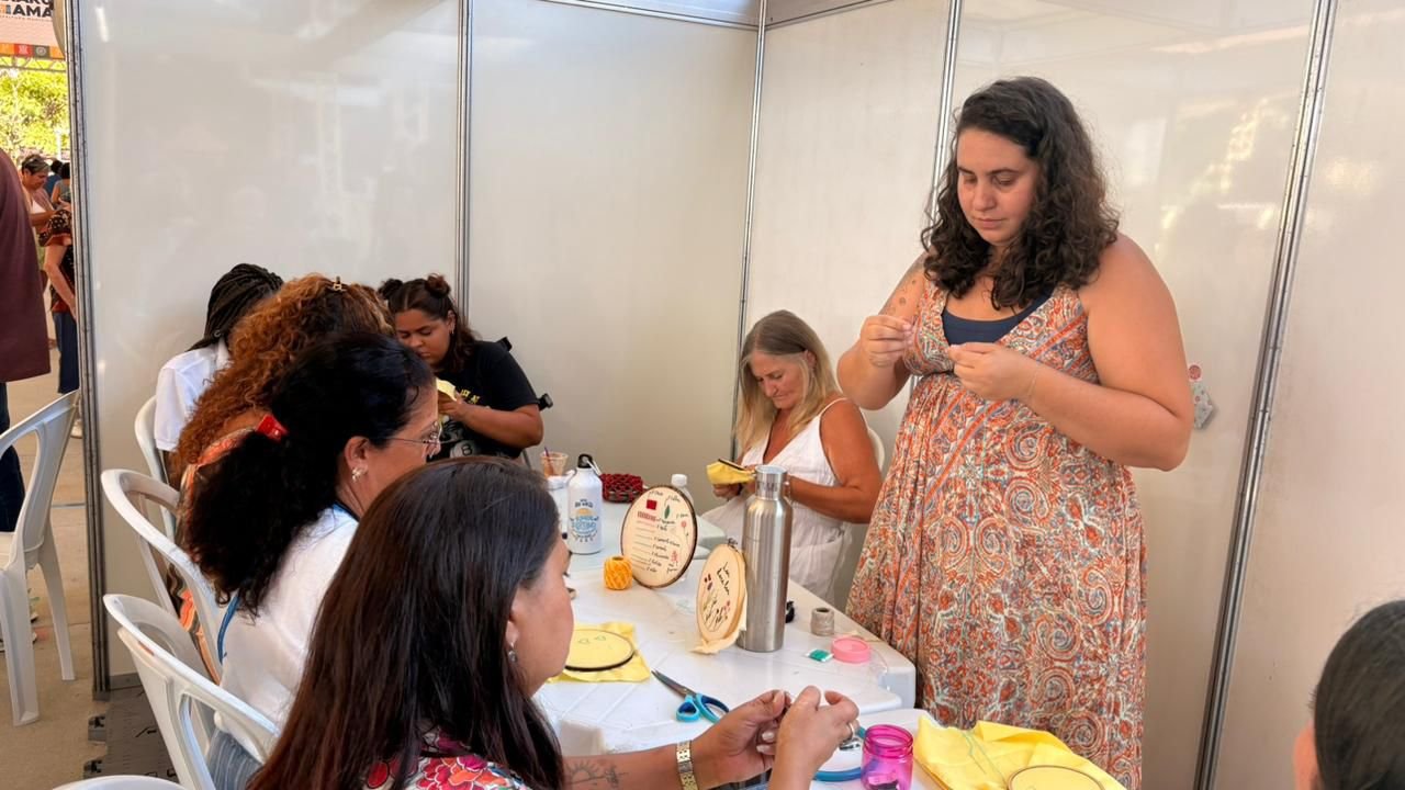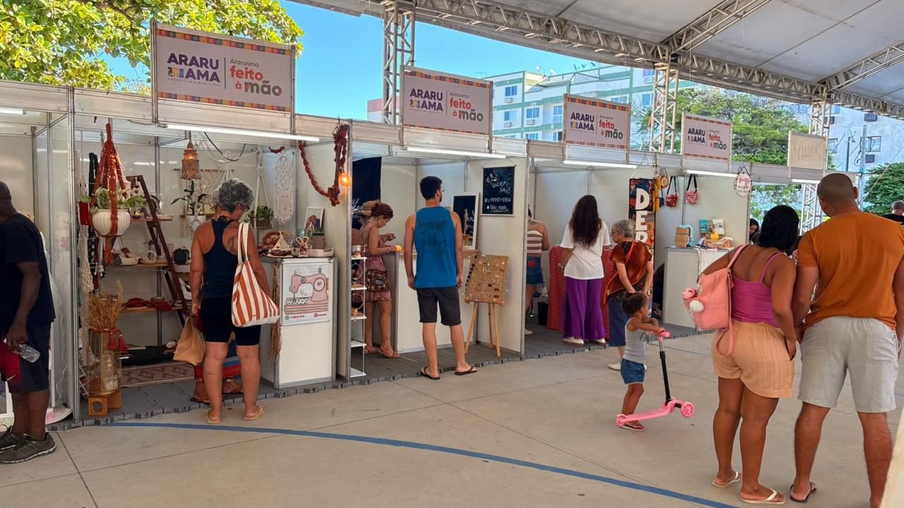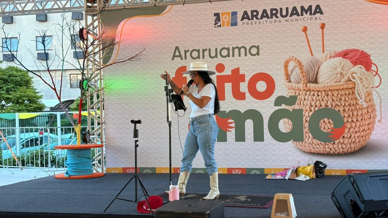 Além da feira, o “Araruama Feito à Mão” ofereceu oficinas gratuitas de fuxico, origami, lettering e pintura orgânica. No palco, a cultura local ganhou voz com apresentações de Marcelo Ourisques, Anderson Casa Nova, Alê Pontes e a esquete teatral “Fio da Vida”.