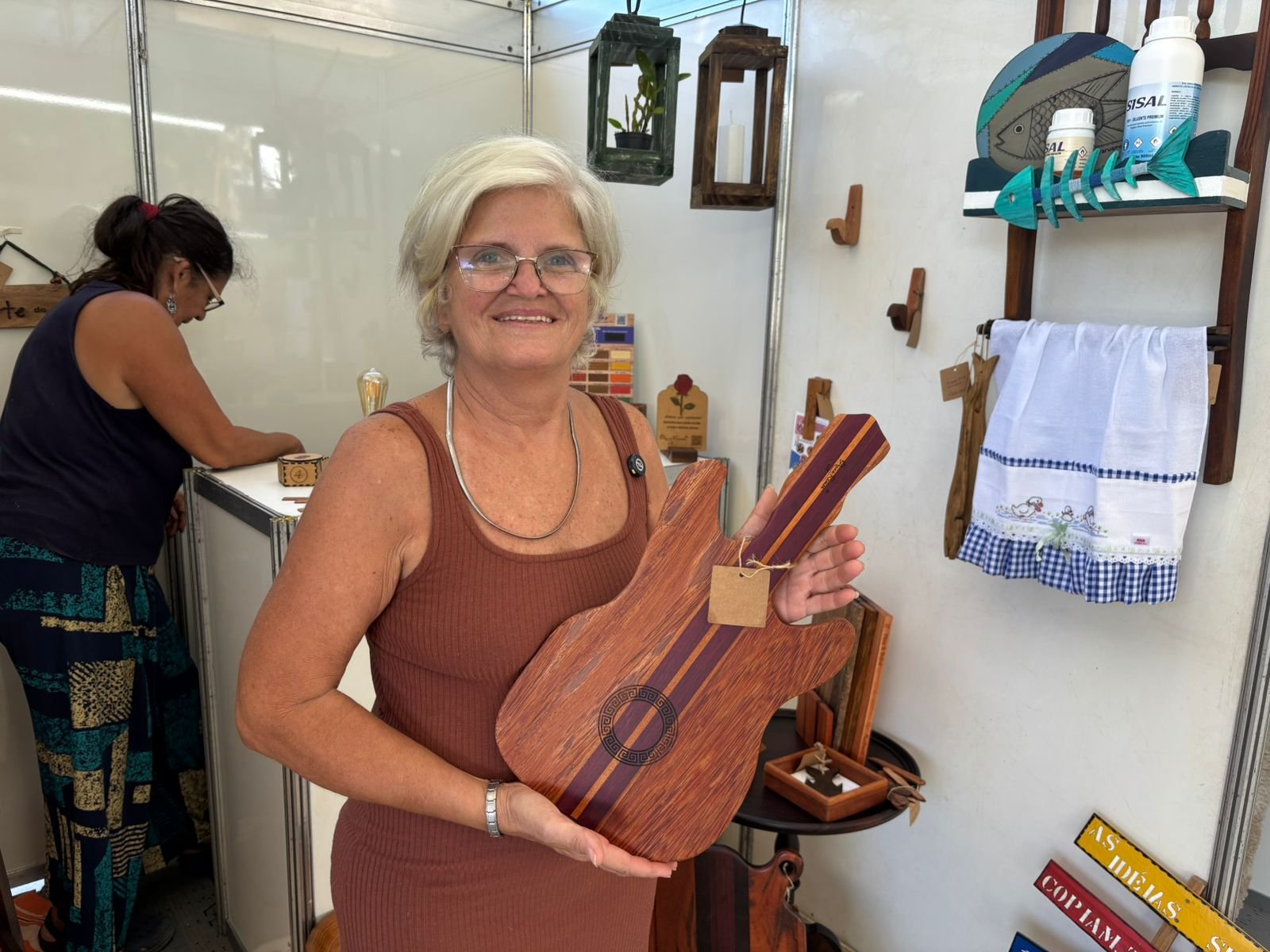 Para os expositores, o evento foi uma vitrine estratégica. Ana Ramos, marceneira criativa, celebrou a oportunidade de visibilidade para o seu trabalho: